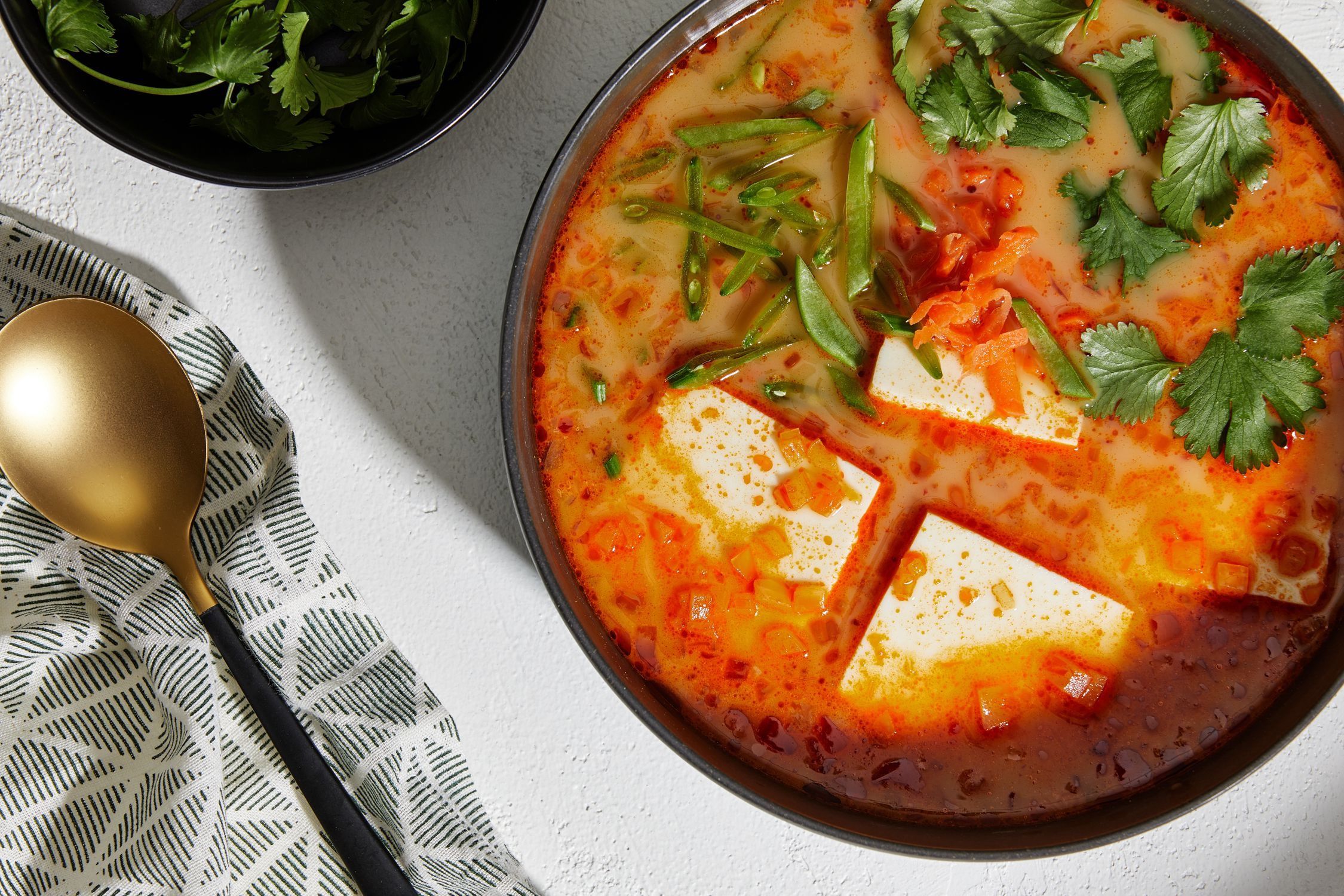 Here’s why I think they appeal: The meals that go in them tend to be casual, off the cuff, and, perhaps most importantly, brothy. They’re the kind of thing you could perhaps eat with a fork, but you’d need to finish with a spoon. (Apologies to one of my favorite podcasters, but I don’t own a spork.) And they’re just what I want to eat as the seasons change — something that’s not exactly soup or stew, but still soupy or stewy enough.