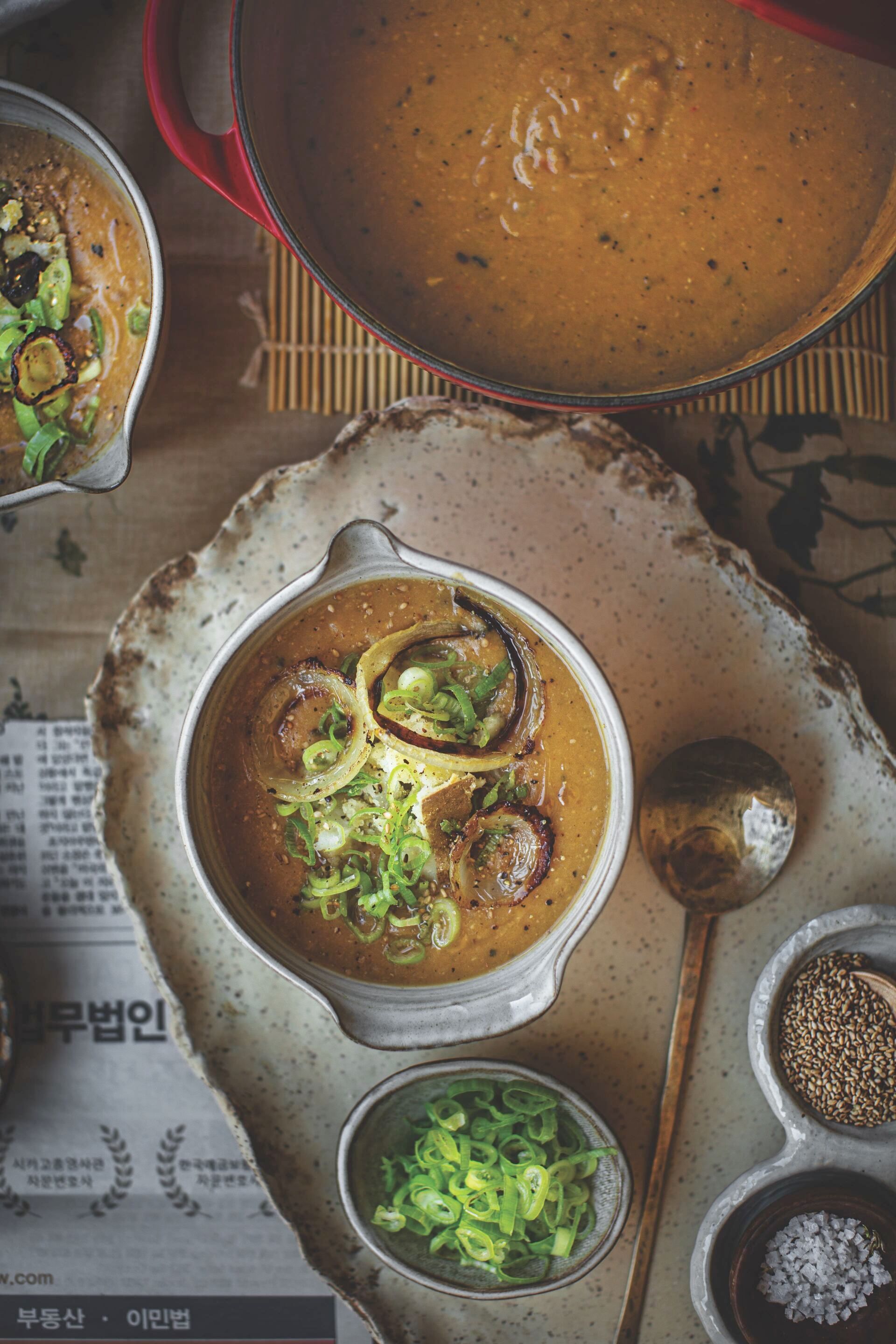 Doenjang, the Korean fermented soybean paste, gives this velvety soup umami and depth. If you’ve never used it, now’s your chance!