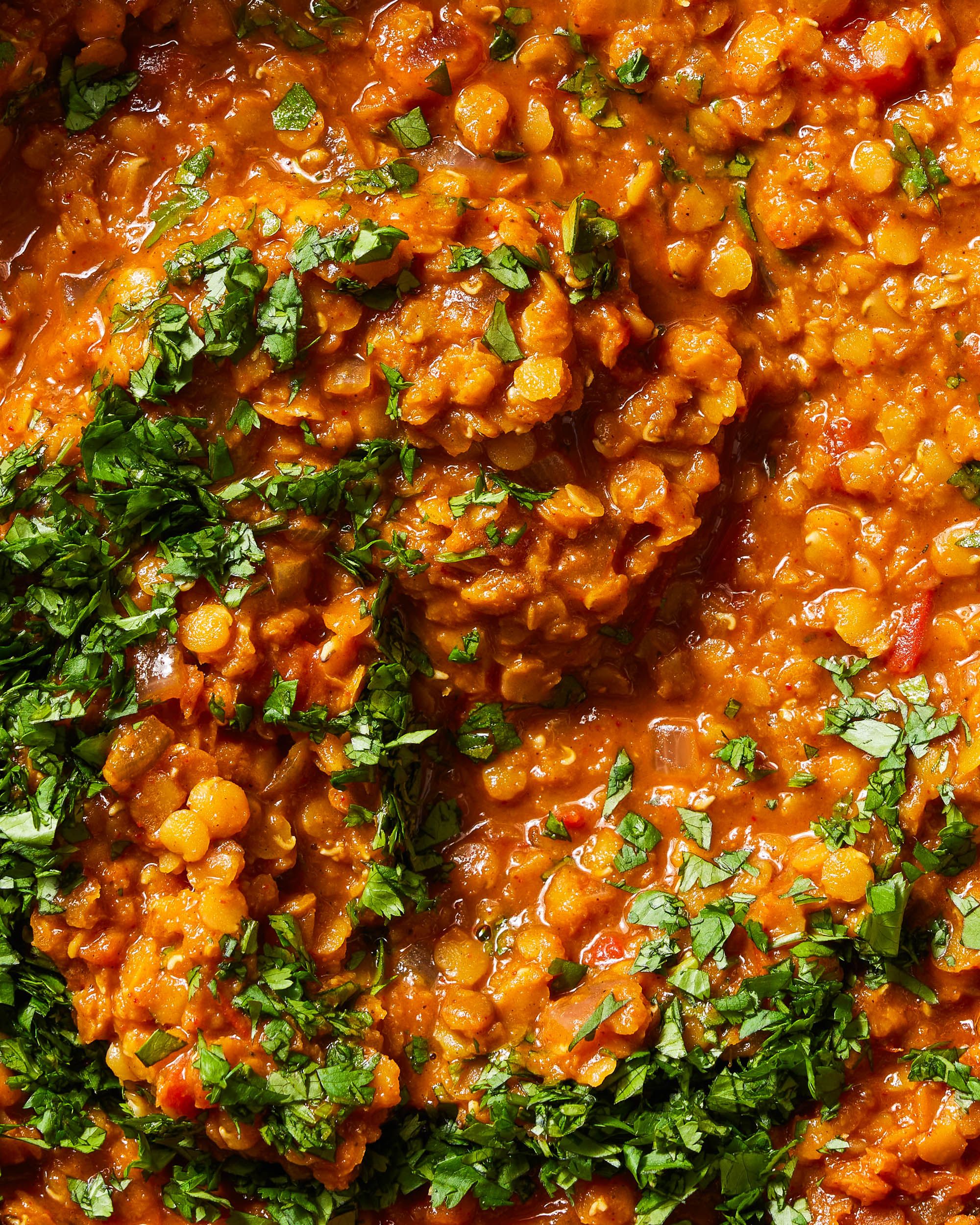 Split red lentils can go from firm to mush in a minute, so keep a close eye on them. You want them completely tender and beginning to break down, but still with a bit of texture.