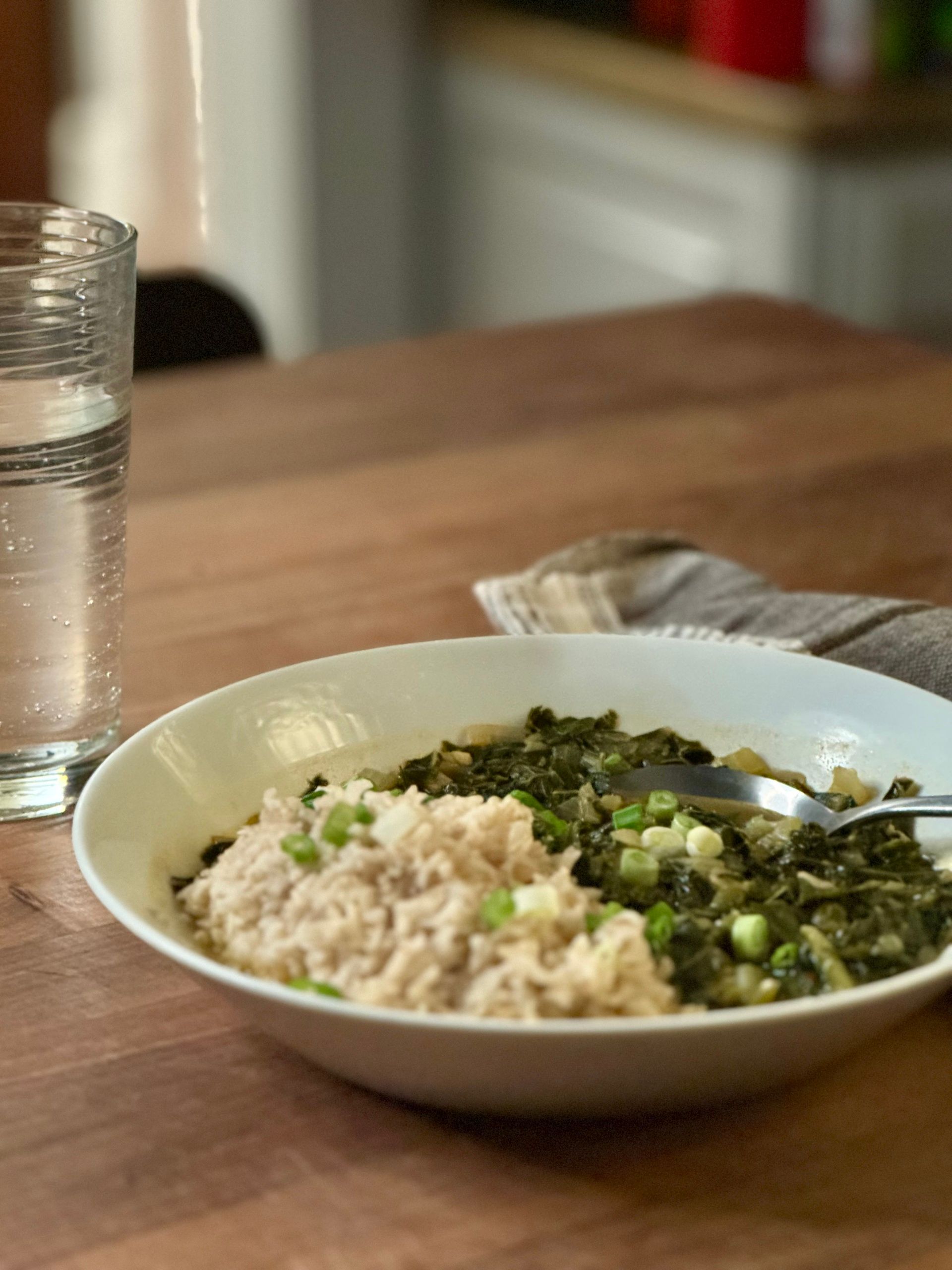 For my second solo-cooking book, “Eat Your Vegetables,” I included a version scaled for one, designed to use leftover greens and their potlikker so it could come together quickly. But since I cook for three these days (or, at least when The Teenager is interested in eating my cooking rather than getting jerk chicken, fries and lemonade from his favorite carryout place), I’ve since scaled it back up.